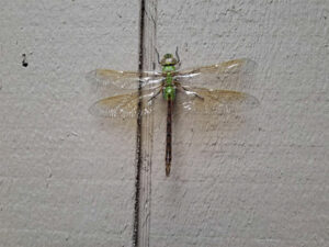 This picture is of a dragonfly that alighted on the paneling next to my door to pay a visit on July 20, 2023. It was quite calm and allowed me to take its picture.